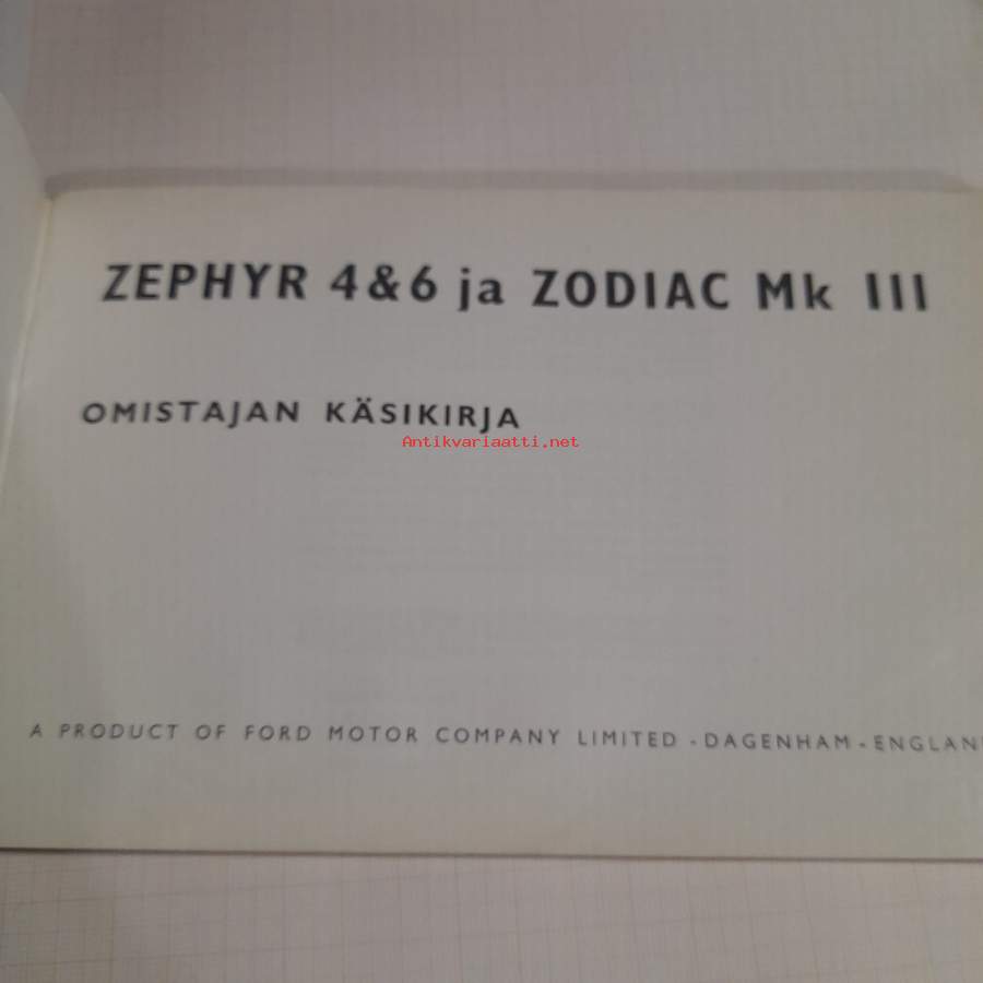 Ford Zephyr Instruction book - Omistajan käsikirja, englanninkielinen