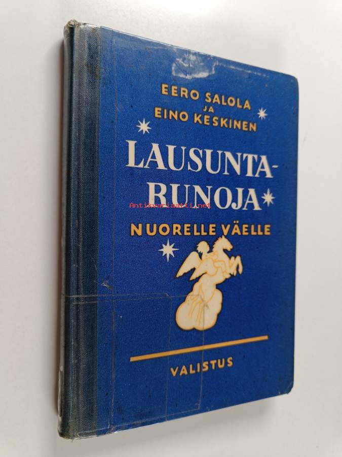 Tyydyttävä. Tarkempi kuntoluokka: K2- ; Pientä kulumaa, pientä tahraisuutta, selkämyksessä hieman vinoutta, kontaktimuovipäällystys, kirjaston poistokirja
