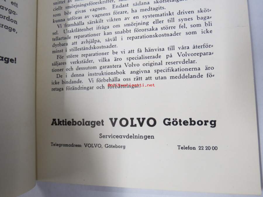 Volvo Lastvagnar Modeller LV 120-123 Instruktionsbok -kuorma-autojen käyttöohjekirja ruotsiksi / operator´s manual in swedish