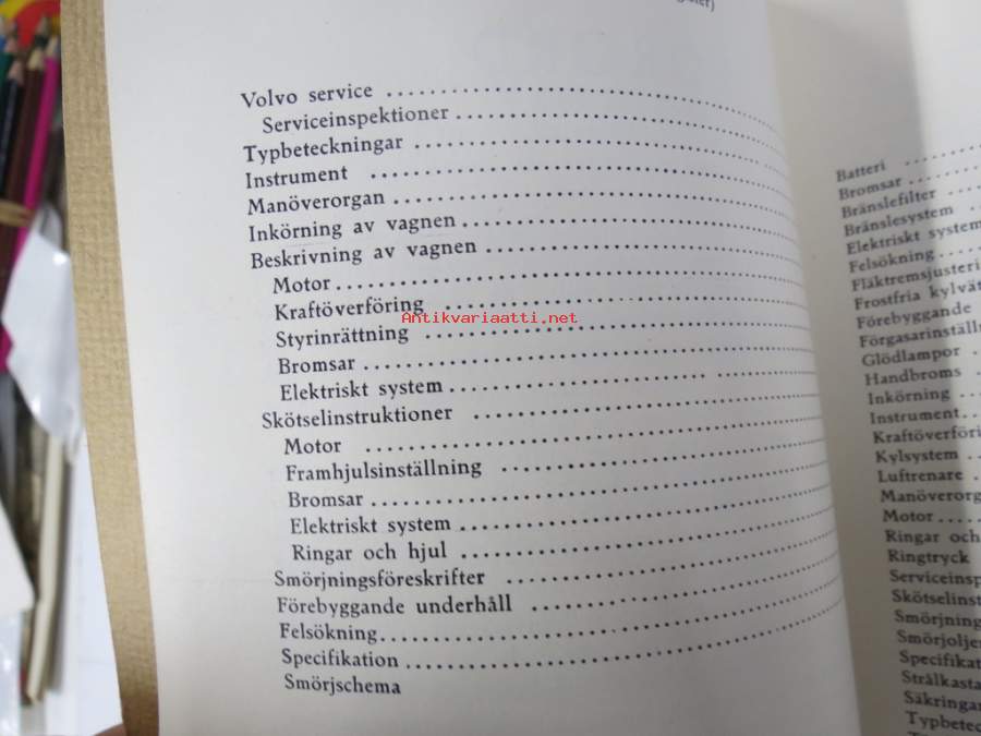Volvo Servicehandbook - Reparation och underhåll Avd. 1 (17) Volvo serviceprogram 240, 260, 340, 66 1975-82 -korjaamokirjasarjan osa ruotsinkielellä