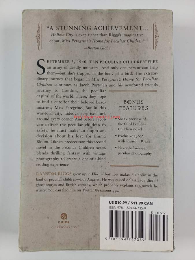 Merkinnät: omistajamerkintäAsiasanat: kaupungit, valokuvat, paranormaalit ilmiöt, pako, orvot, hirviöt, lapset (ikäryhmät), lapset (perheenjäsenet), aikamatkat, poikkeusyksilöt, outous, orpokodit