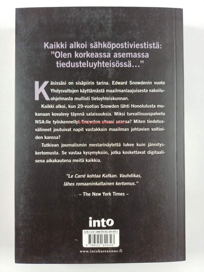 Alkuteos: The Snowden filesAsiasanat: henkilöhistoria, vakoilijat, tietovuoto, hakkerit