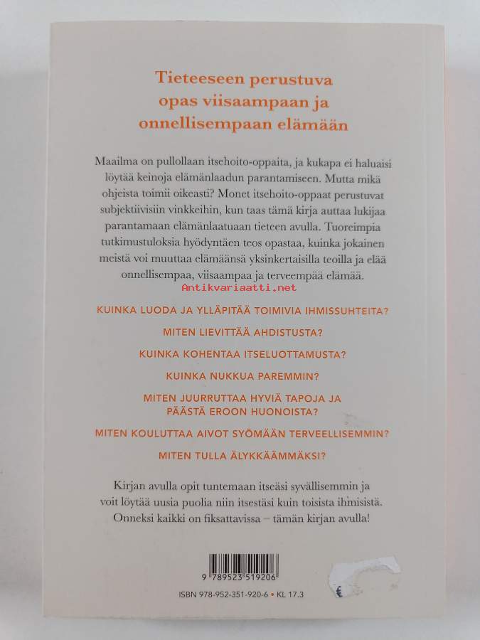 Muu(t) tekijä(t): Kirsimarja TielinenAlkuteos: This book could fix your lifeAsiasanat: älykkyys, terveyskäyttäytyminen, elämäntaito, menestyminen, onnellisuus, ihmissuhteet, itsekasvatus, itsetuntemus, elämänhallinta, hyvinvointi, itseluottamus, hyvä elämä, viisaus, stressinhallinta, uni (lepotila)