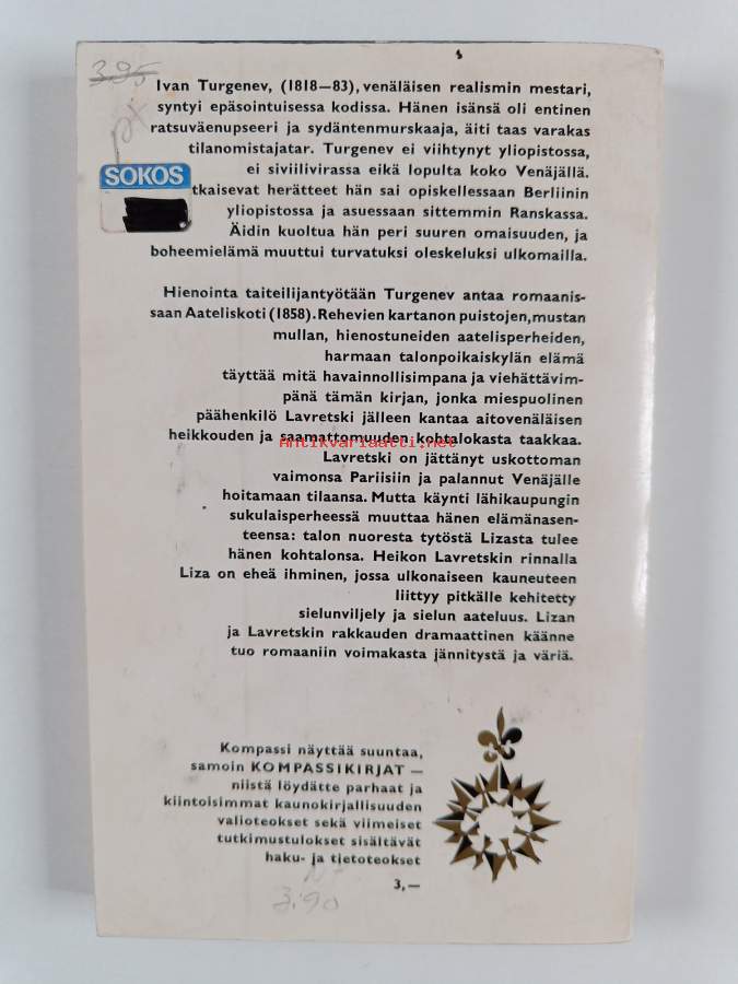 Hyvä. Hieman nuhruisuutta kansissa, hieman kulumaa kansissa, takana vanha hintalappu, selkämyksessä hieman vinoutta, selkämyksessä lukutaittumaa