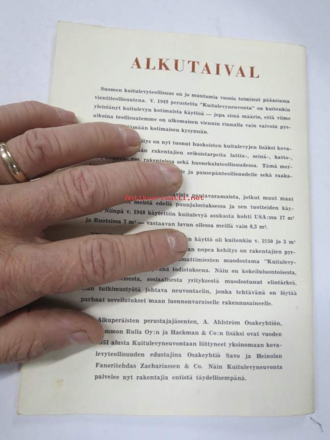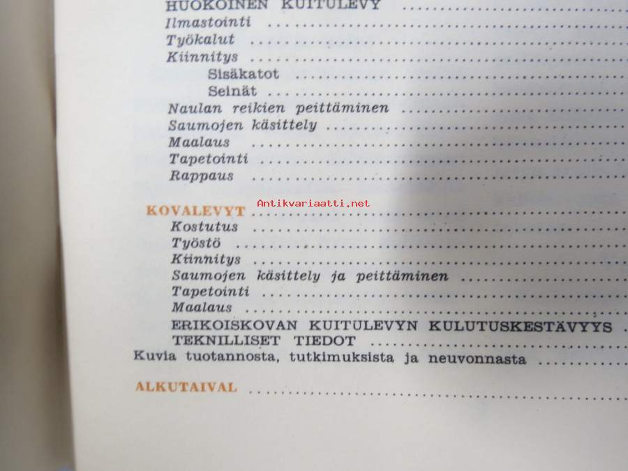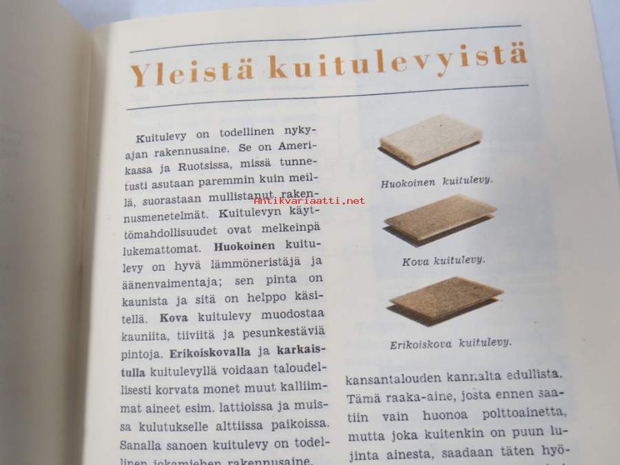 Kuitulevyopas 1951 - Tee se itse kuitulevystä tai huokoisesta kovalevystä, perusteellinen opas rakentajille - valmistajatehtaitten yhteisen yhdistyksen julkaisu
