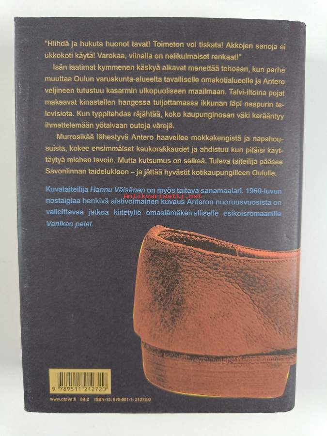 Toiset kengät, 2007. 5.p. 1960-luvun nostalgiaa henkivä aistivoimainen kuvaus Anteron uoruusvuosista – jatkoa omalämäkerralliselle esikoisromaanille Vanikan palat.