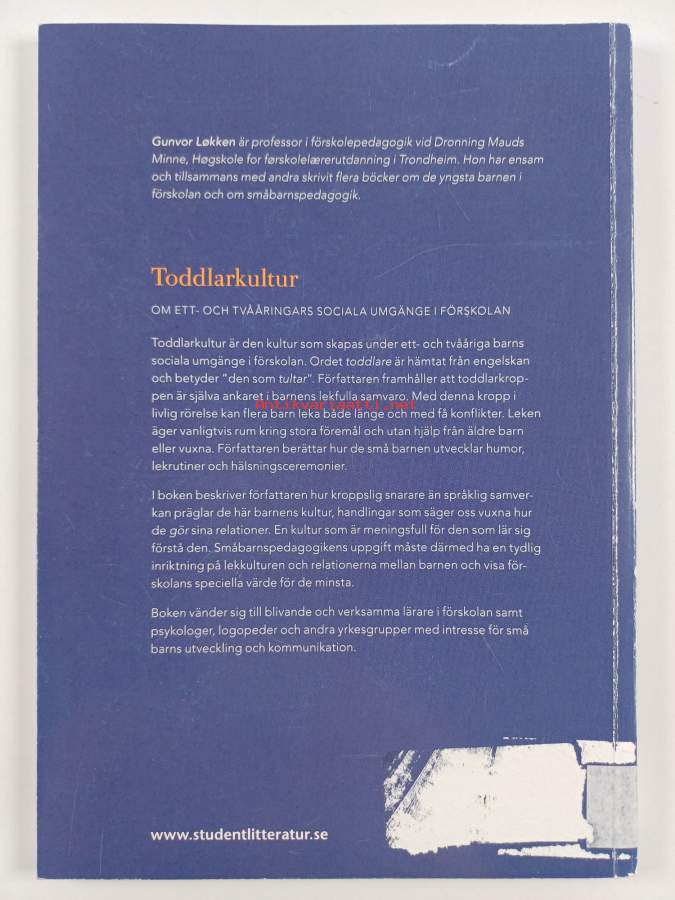 Muu(t) tekijä(t): Inger LindelöfAlkuteos: Toddlerkultur.Asiasanat: sosiaalinen vuorovaikutus, havainnointi, sosiaaliset taidot, leikki-ikäiset, varhaiskasvatus, päiväkodit, vertaisryhmät, sosiaalinen kehitys, sosiaalinen ympäristö, lapset (ikäryhmät), barn (åldersgrupper), social utveckling, småbarnspedagogik, social kompetens, Social interaktion, daghem, social miljö, barn i lekåldern, observerande, grupper av likställda