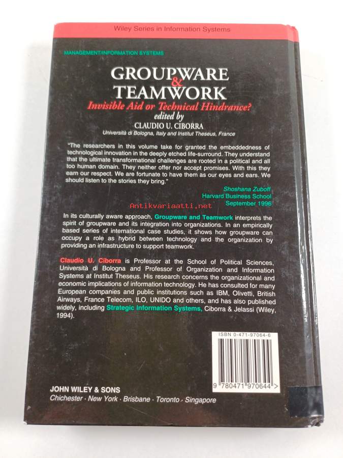 Muu(t) tekijä(t): Claudio U. CiborraSarja: Wiley series in information systemsAsiasanat: ryhmätyö, atk, tietojenkäsittely, organisaatiot, työryhmäohjelmistot, tiimityö, menetelmät, työryhmät, organisationer, teamarbete, grupparbete, databehandling, metoder, arbetsgrupper, adb, gruppvara