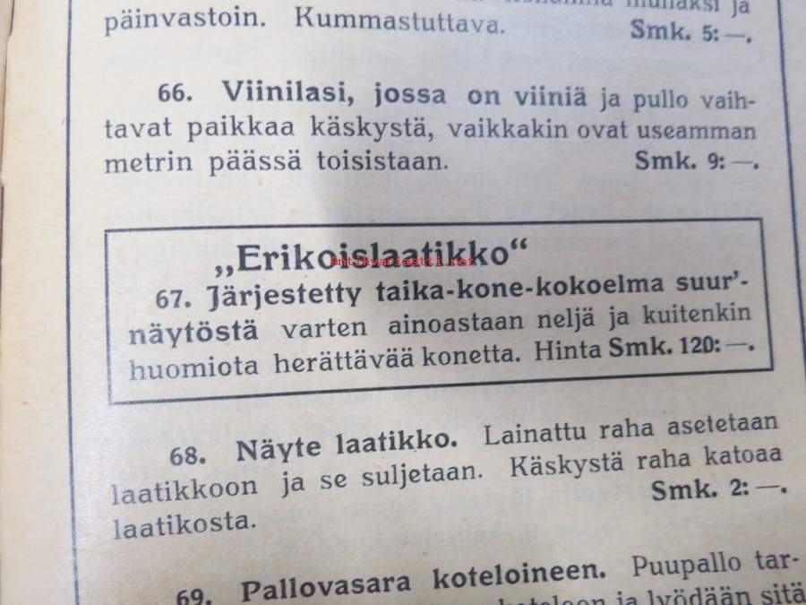 V. Stenbergin Harjasitomo Urjala 1930 Hintaluettelo