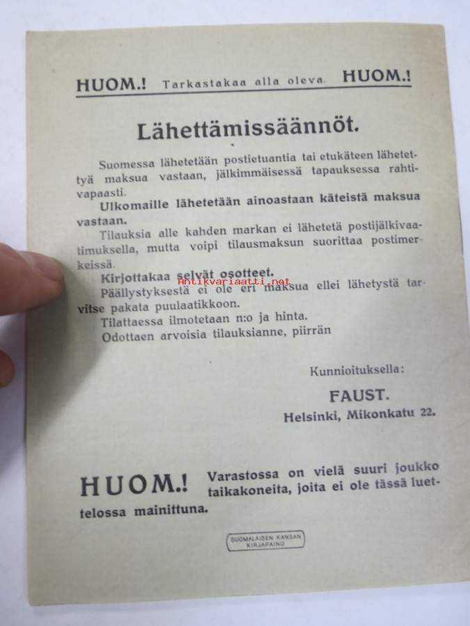 Hintaluettelo taikakoneista - Faust, Helsinki