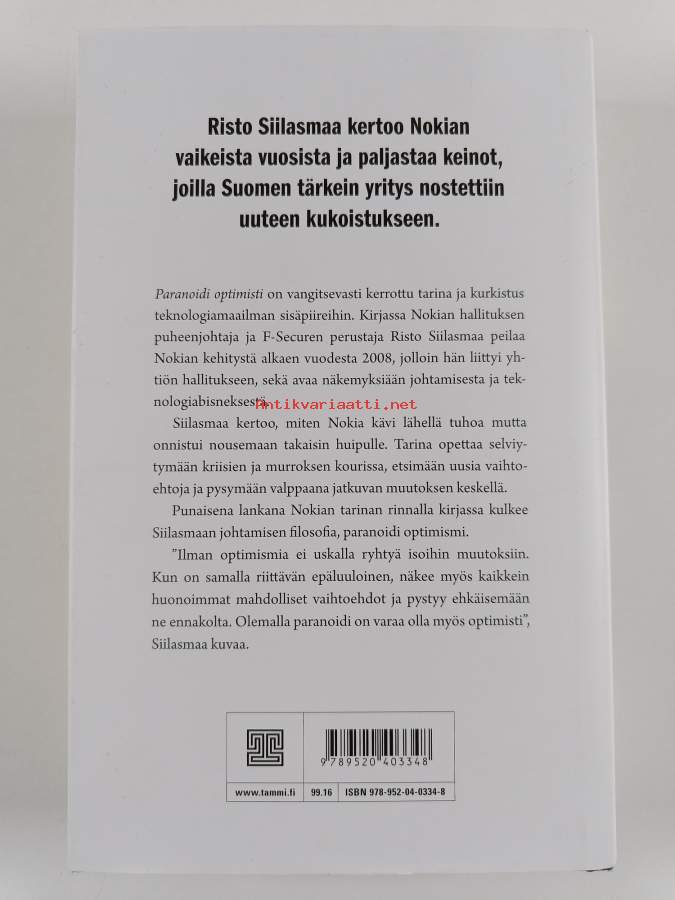 Risto Siilasmaa---Catherine Fredman / Paranoidi optimisti. Näin johdin Nokiaa murroksesta.