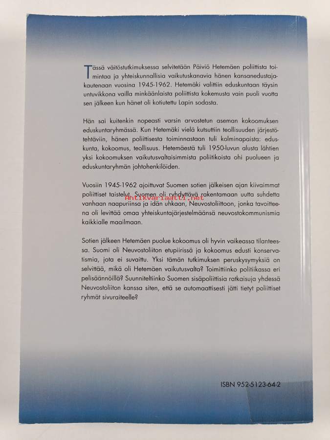 Etulinjasta Etelärantaan : Päiviö Hetemäen poliittinen toiminta vuoteen 1962