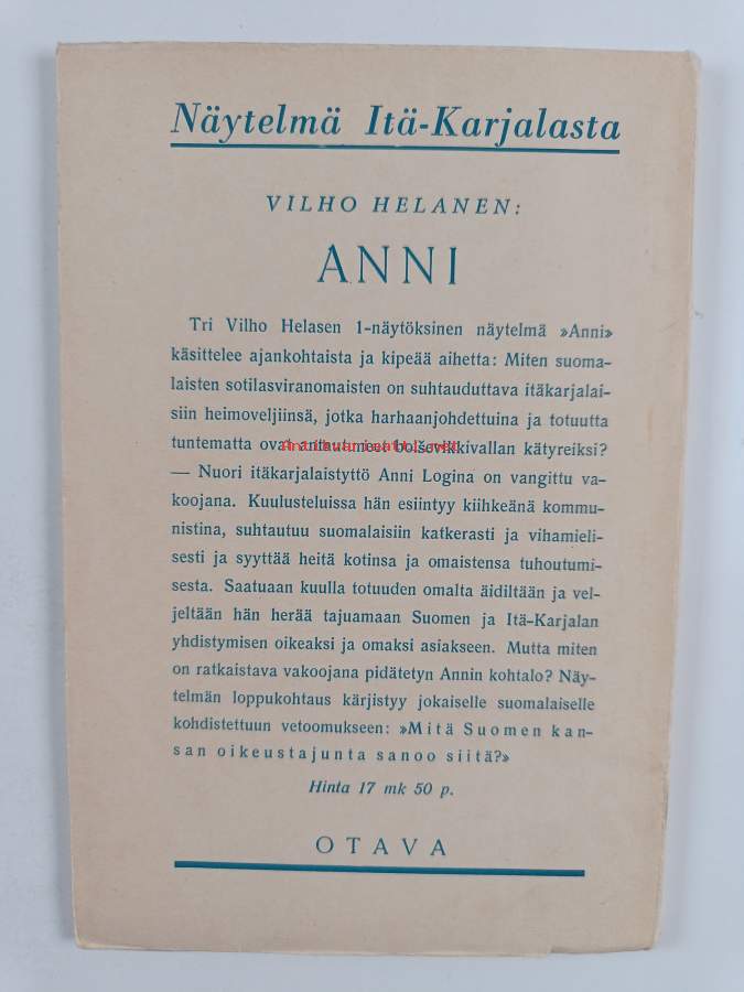 Anni : 1-näytöksinen näytelmä Itä-Karjalasta (signeerattu, tekijän omiste)