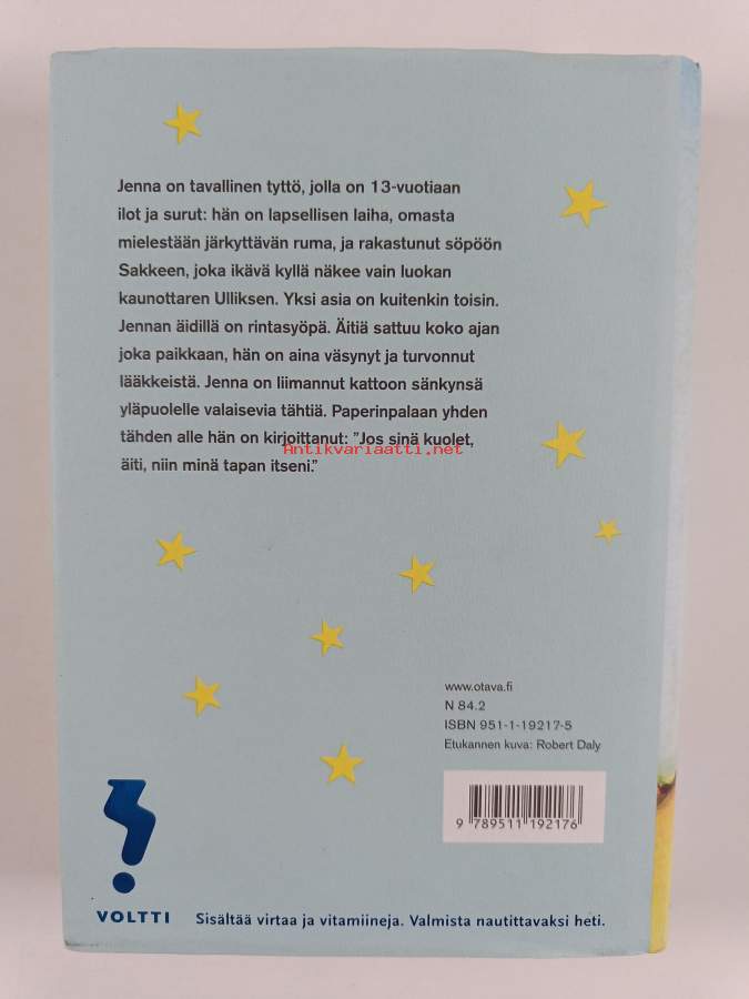 Muu(t) tekijä(t): Nora SchuurmanSarja: VolttiAlkuteos: I taket lyser stjärnornaAsiasanat: syöpätaudit, ahdistus, rintasyöpä, äidit, tyttäret, nuortenkirjallisuus, murrosikä, sairastuminen, pelko, esikoisteokset
