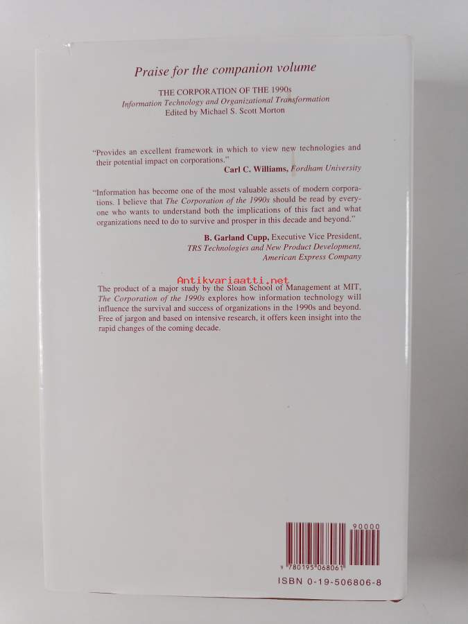 Muu(t) tekijä(t): Michael S. Scott MortonAsiasanat: johtaminen, tietotekniikka, organisaatiot, organisationer, informationsteknik, ledarskap (verksamhetsledning)