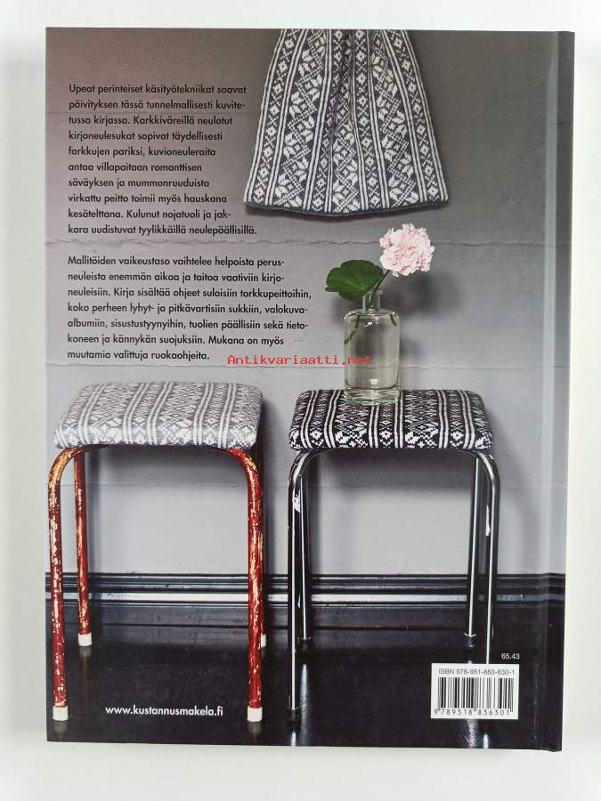 Muu(t) tekijä(t): Virpi Vainikainen, Bodil HagaAlkuteos: Garnglede i RosendalAsiasanat: ruokaohjeet, käsityöohjeet, käsityöt, neulonta, neuletyöt, tyynyt, sukat, kirjoneuleet