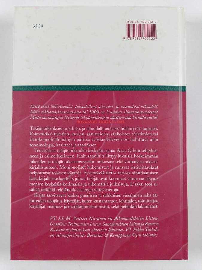 Muu(t) tekijä(t): Pekka TarkelaAsiasanat: lainsäädäntö, tekijänoikeus, hakuteokset, terminologia