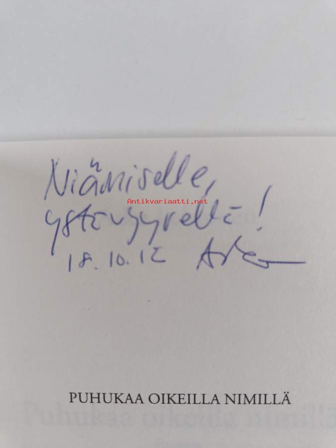 Puhukaa oikeilla nimillä : runoja (signeerattu, tekijän omiste)