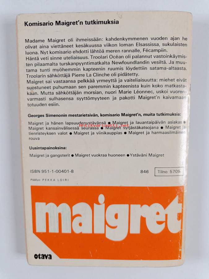 Tyydyttävä. Tarkempi kuntoluokka: K2- ; Jonkin verran repeämää etukannen ja selkämyksen taitteessa, hieman taitejälkeä kansissa, hieman kulumaa, selkämyksessä hieman vinoutta, selkämyksessä lukutaittumaa, sidos hieman näkyvissä paikoitellen.