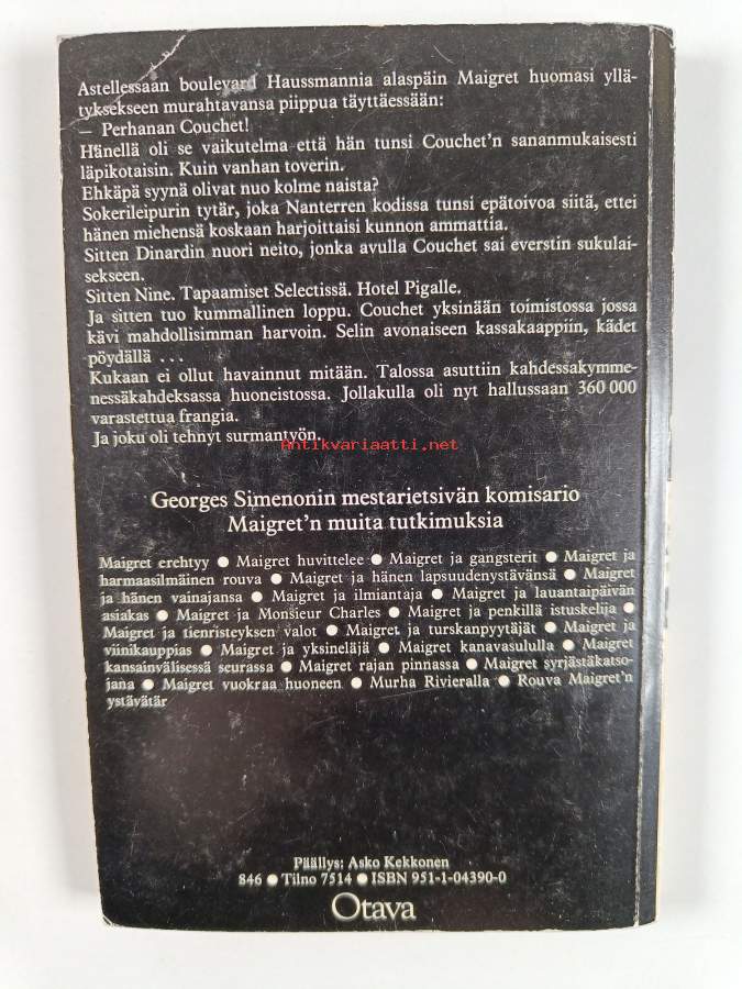 Muu(t) tekijä(t): Aili (suom.) PalménSarja: Komisario Maigret'n tutkimuksiaAlkuteos: L'ombre chinoise