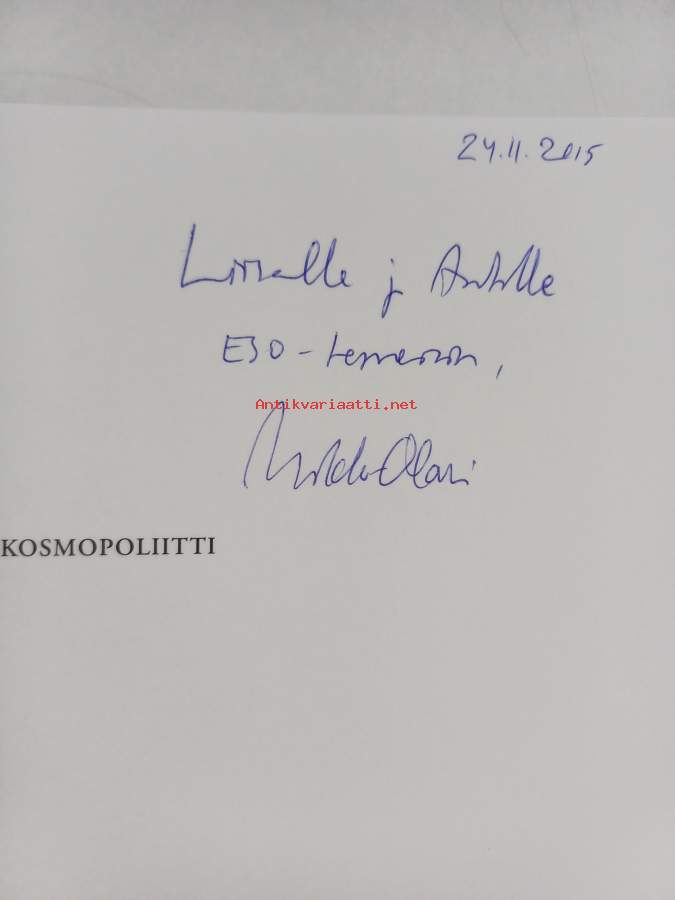 Erinomainen. Tarkempi kuntoluokka: K4- ; Pienoista käytön jälkeä. tekijän signeeraama omiste