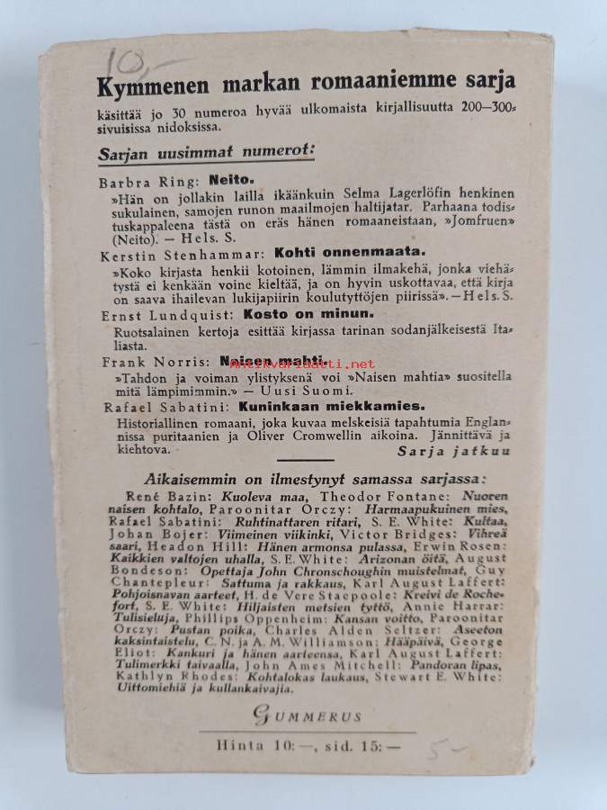 ensimmäisen ja viimeisen aukeaman taitteessa hieman pintarepeämää
