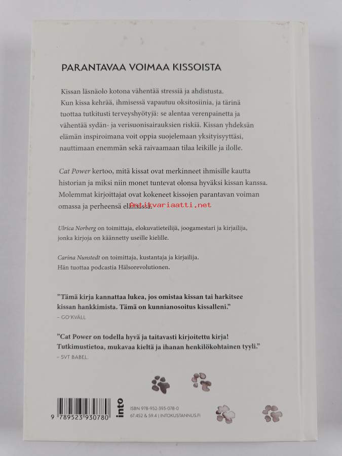 Alkuteos: Cat Power: Kattens läkande kraftAsiasanat: mielenterveys, terveys, elämäntaito, kissat, hyvinvointi, henkinen kasvu, harrastukset, vaikuttajat, elämänviisaus, lemmikit, sydäntälämmittävä, inspiroiva, hurmaava, ilahduttava, informatiivinen, populaaritiede