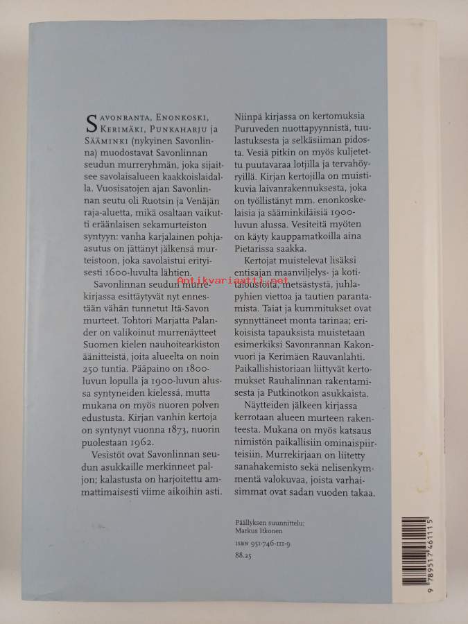 Sarja: Suomalaisen Kirjallisuuden Seuran toimituksia, |x 0355-1768 749Asiasanat: suomen kieli, murteet, savolaismurteet, itämurteet