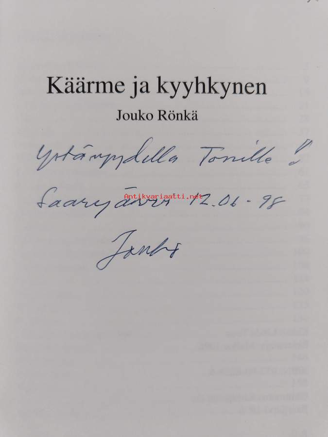 Hyvä. Tarkempi kuntoluokka: K3+ ; Aivan pienoista taitejälkeä kansissa, pienoista kulumaa. signeerattu "Jouko"