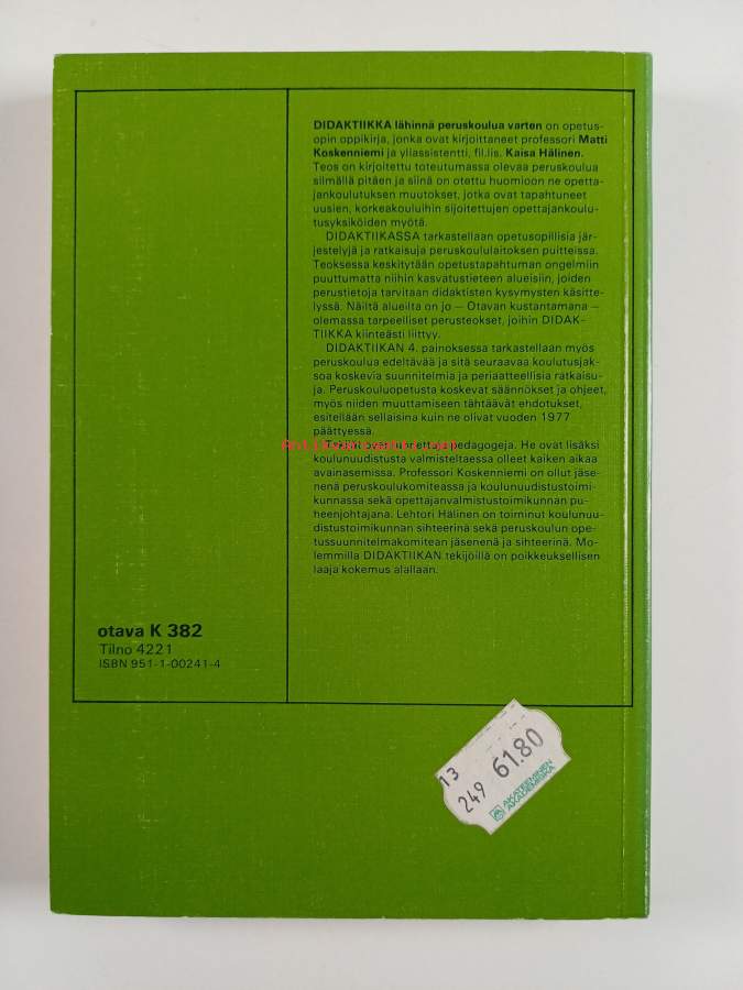 Hyvä. Tarkempi kuntoluokka: K3+ ; Hieman kulumaa kansissa, takana vanha hintalappu