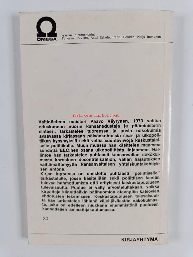 Sarja: OmegaAsiasanat: ulkopolitiikka, ideologiat, puolueet, keskustapuolueet, sosiaalipolitiikka, puoluepolitiikka, puolueohjelmat, ohjelmat (suunnitelmat)