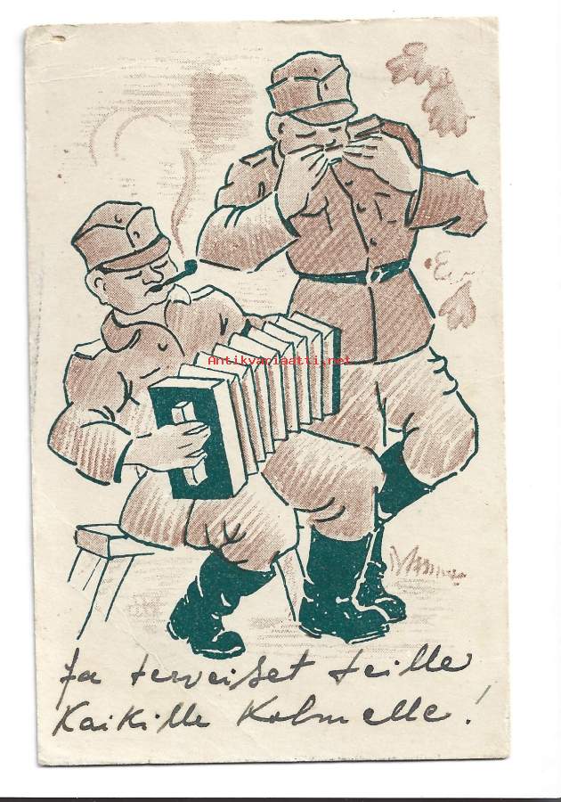 Korsuorkesteri - sotilaspostikortti postikortti kulkenut Kenttäpostissa