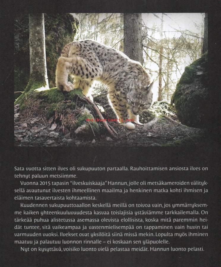 Ilves. Sata vuotta sitten ilves oli sukupuuton partaalla. Rauhoituksen ansiosta ilves on tehnyt paluun metsiimme.