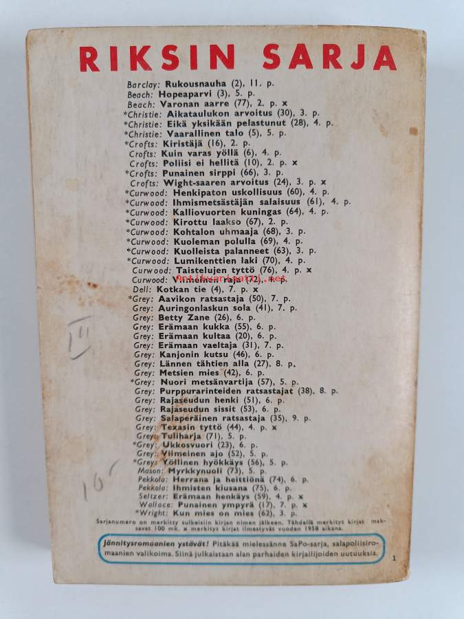 Muu(t) tekijä(t): Sakari SaarikiviSarja: Riksin sarja 10Alkuteos: Inspector French's greatest case