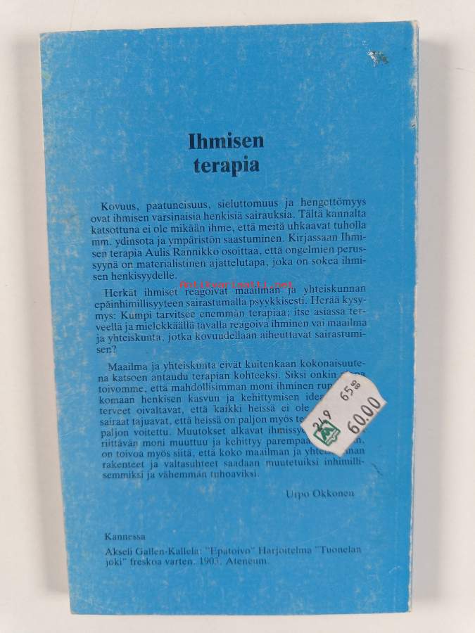 Hyvä. Tarkempi kuntoluokka: K3+ ; Hieman kulumaa kansissa, selkämyksessä aavistus vinoutta, takana vanha hintalappu