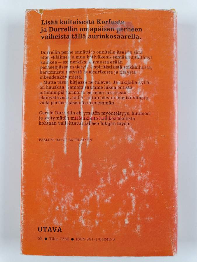 Hyvä. Tarkempi kuntoluokka: K3+ ; Hieman kolhua selkämyksen päissä, selkämyksessä hieman vinoutta. Kansipaperin kunto: joitain repeämiä/kulumaa