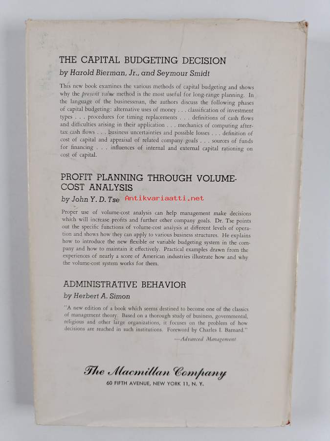 Muu(t) tekijä(t): Sherrill Cleland, W. Allen SpiveyAsiasanat: yritystoiminta, suunnittelu, taloudelliset mallit, lineaarinen optimointi
