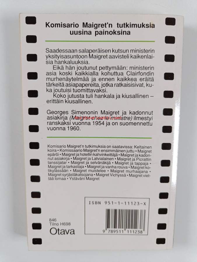 Muu(t) tekijä(t): Irmeli NykänenSarja: Komisario Maigret'n tutkimuksiaAlkuteos: Maigret chez le ministre