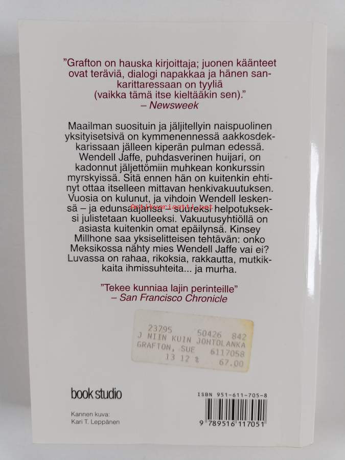 Hyvä. Hieman kulumaa kansissa, selkämyksessä hieman vinoutta, selkämyksessä lukutaittumaa, takana vanha hintalappu