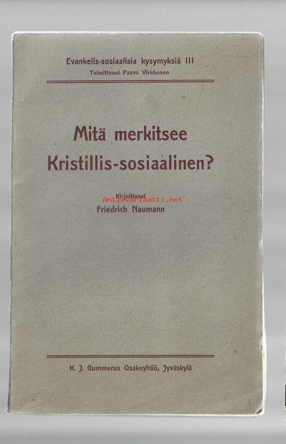 Mitä merkitsee Kristillis-sosiaalinen / Friedrich Naumann 1908 54 s