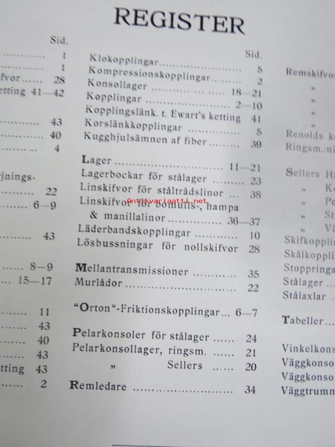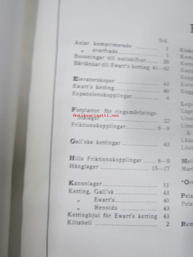 Maskinförnödenheter och Sprutor, Smörjapparater, Armatur, Pumpar, Rör, Verktyg, Transmissioner -kone- ja työkalukuvasto