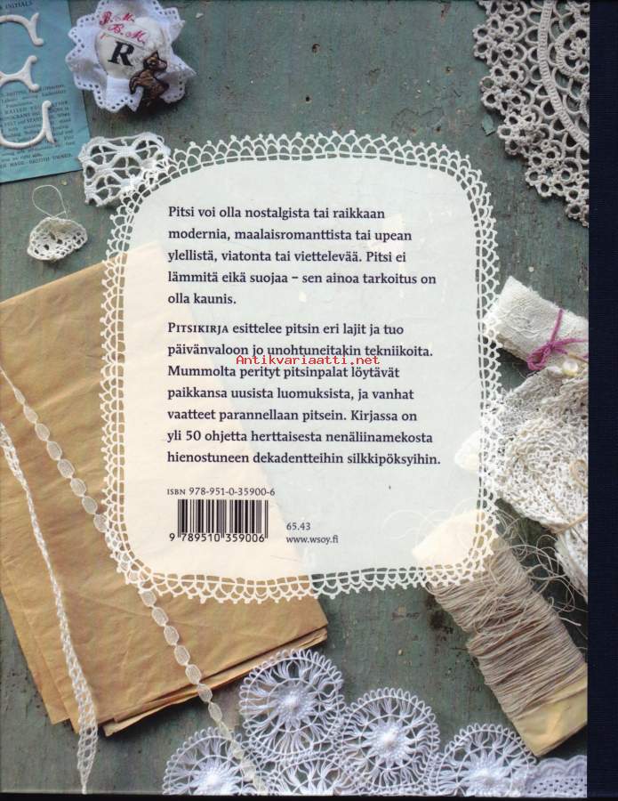 Pitsikirja, 2010. 2.p. Esittelee pitsin eri lajit ja tuo päivänvaloon jo unohtuneitakin tekniikoita. Yli 50 ohjetta.