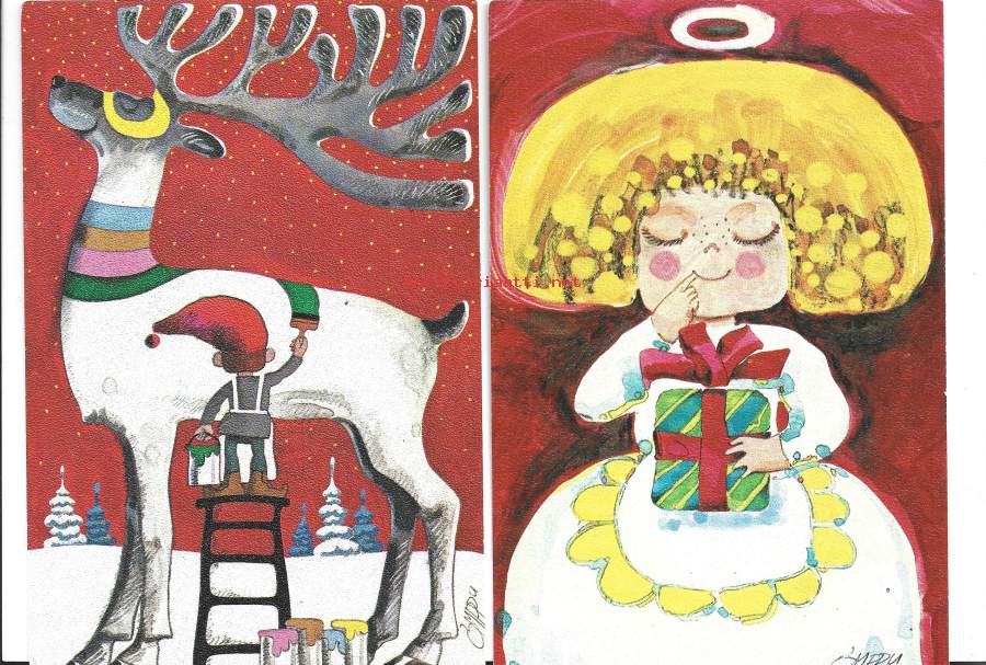 Omppu - Osmo Omenamäki, , taiteilijakortti joulukortti kulkematon 2 kpl erä