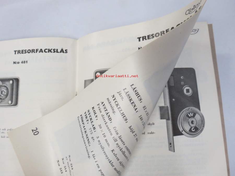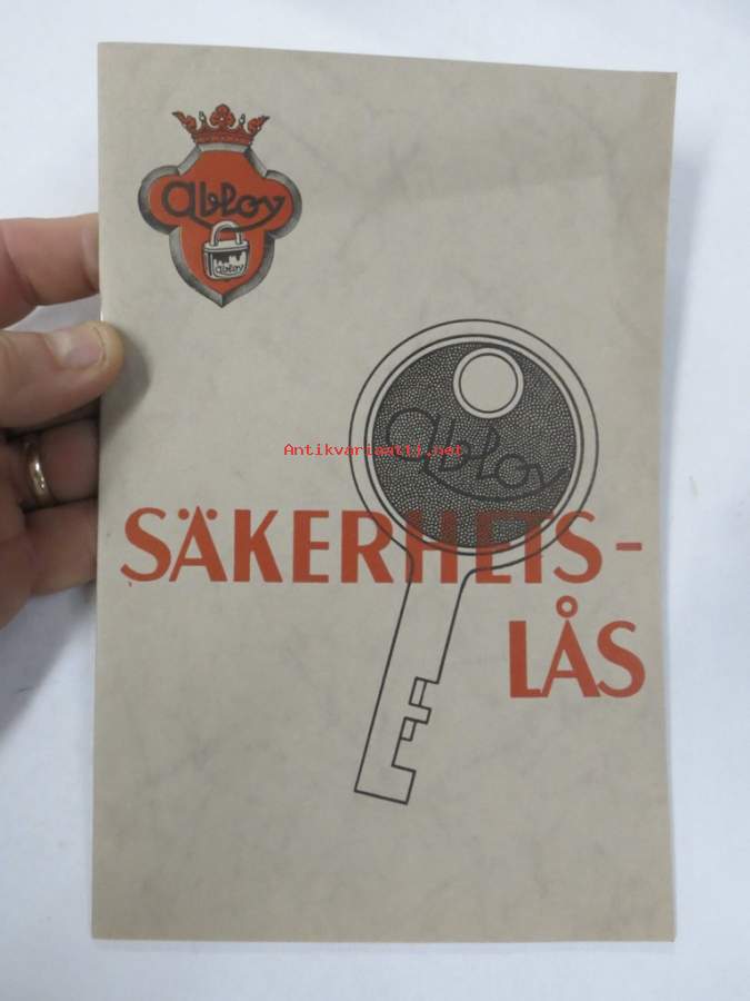 Abloy Säkerhetslås -Abloy-lukkojen esittely ja luettelo vuodelta 1935, ruotsinkielinen