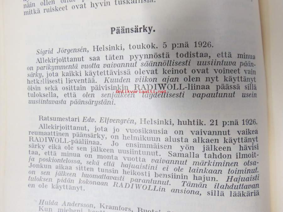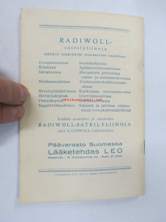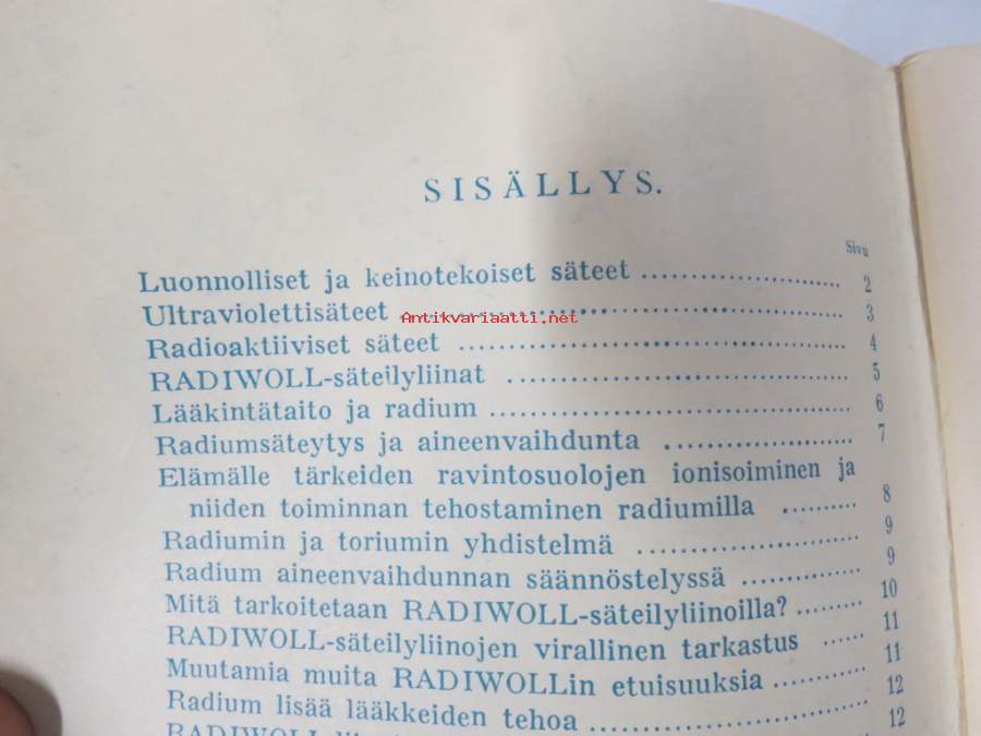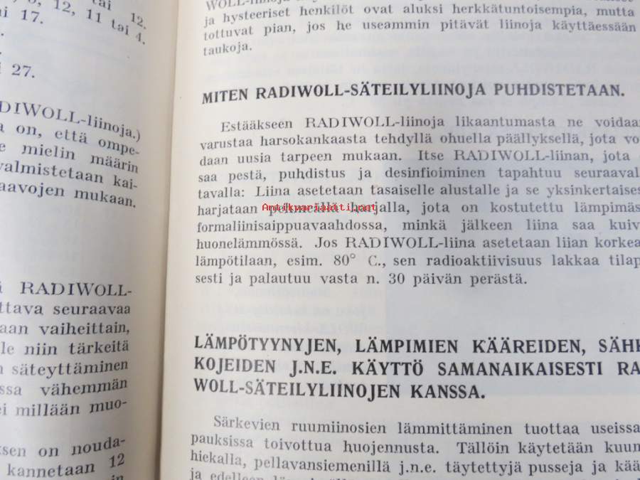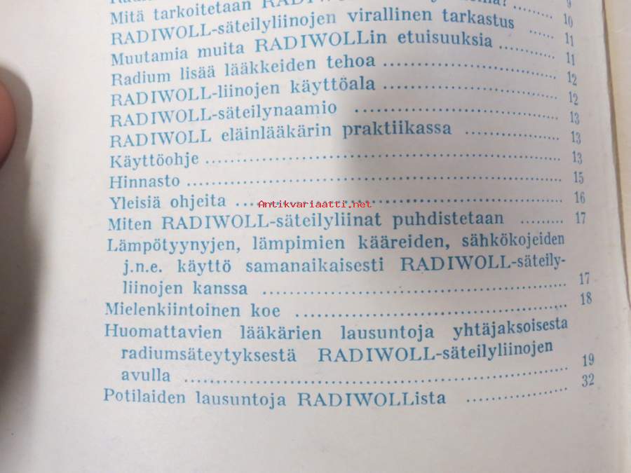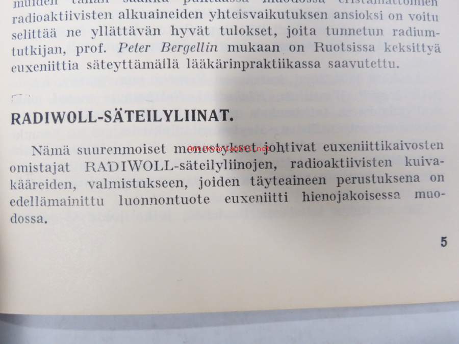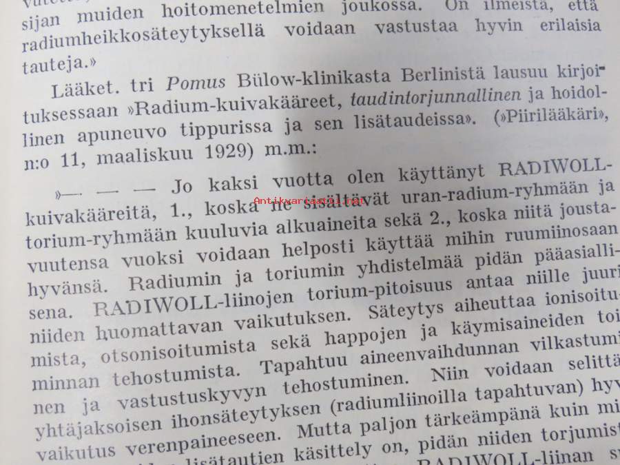 Radiwoll heikkosäteytys / Radium-torium säteilyliinat - Lääketehdas Leo, radioktiivisten tuotteiden luettelo, niiden käyttö, lausuntoja ym.