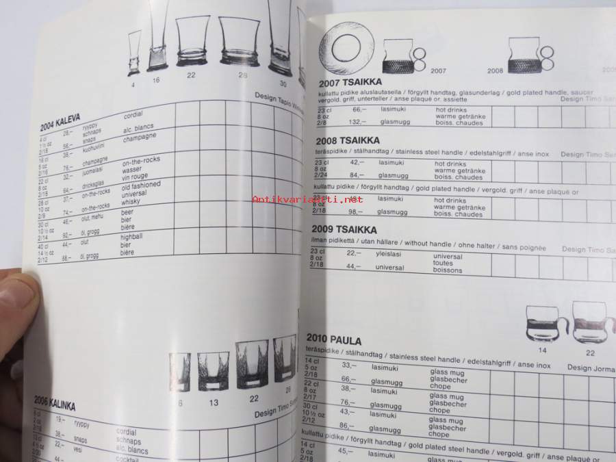 Iittala - Finland -lasisarjat, tuopit, kaatimet -myyntiesite / luettelo, mm Tsaikka, Paula, Kaveri, Avec, Aarne, Gaissa, Kuura, Ultima Thule, Niva, Pallas, Otso, ym.