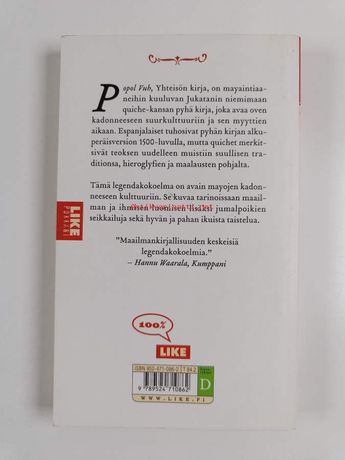 Muu(t) tekijä(t): Ulla Ranta, Helinä KarttunenMerkinnät: omistajamerkintäSarja: Like-pokkari 100Asiasanat: kansalliseepokset, mayat