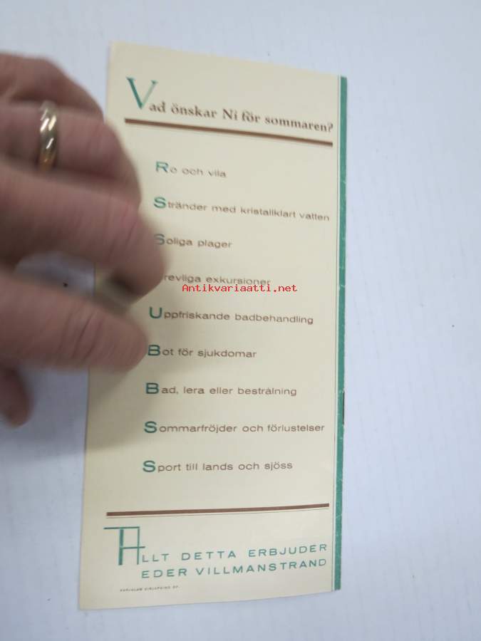 Vilmanstrand Badsäsongen 19?? (Lappeenranta kylpyläsesonki) -esite, ruotsinkielinen