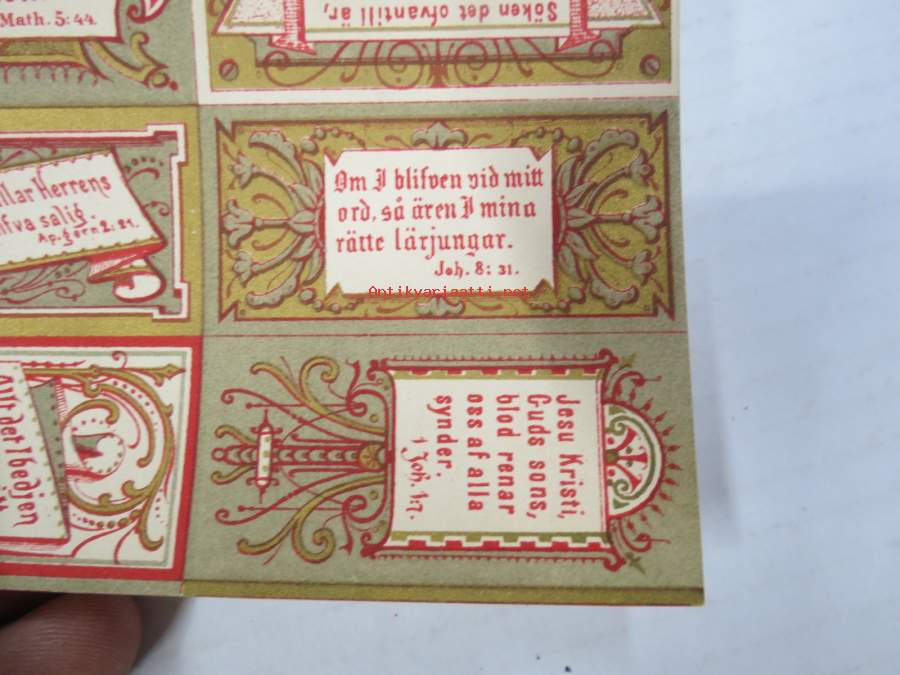 Bedjen för dem.., Jesu Kristi Guds son..., Söden det ofvantill är... -ruotsinkielisiä uskonnollisia mietelauseita, painovuosi 1877 / 78