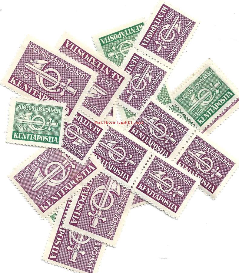 Puolustusvoimat Kenttäpostia 1943 -44 yli 20 kpl erä